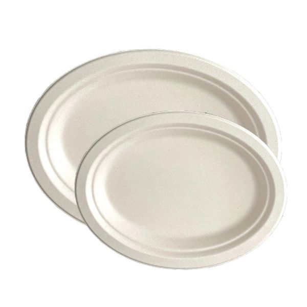 Eco-friendly Compostable Disposable Sugarcane Bagasse Pulp Oval Food Plates